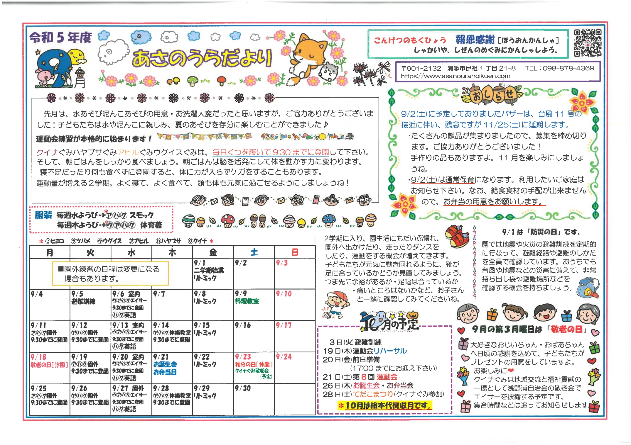 第2回 あさのうら保育園バザー 延期についてのお知らせ >