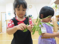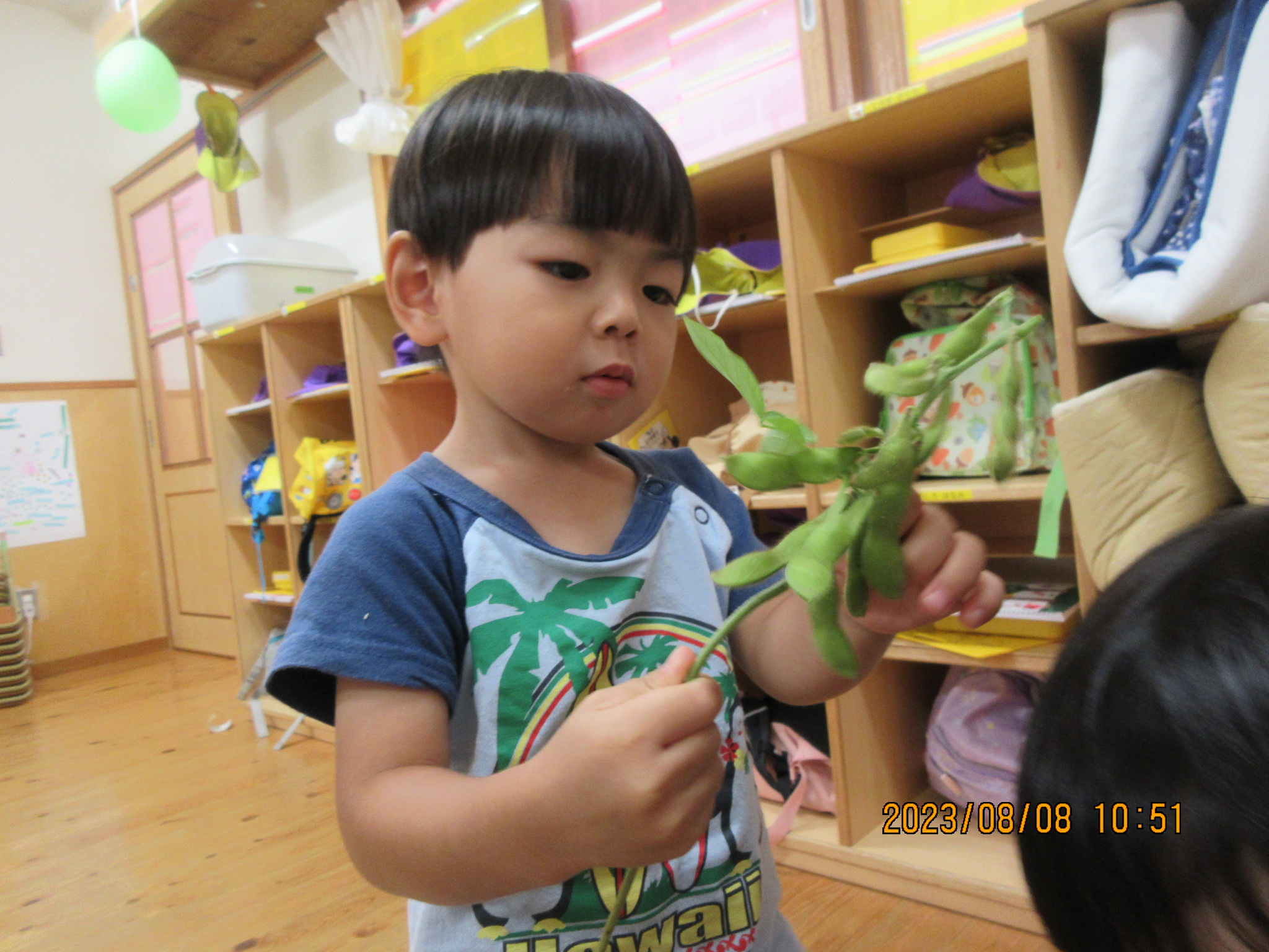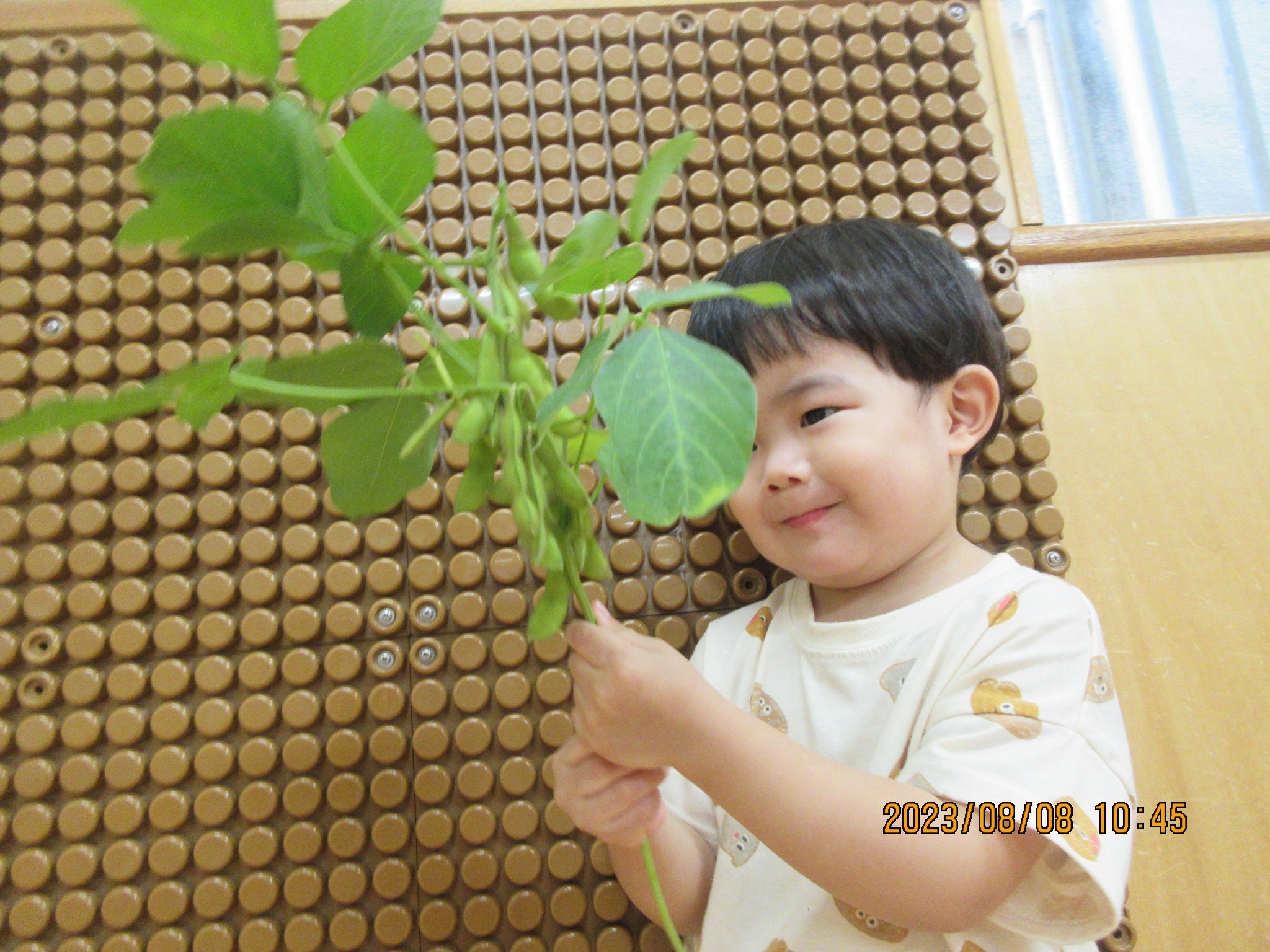 ウグイス組さんがお世話をしていた「枝豆」が順調に大きくなり