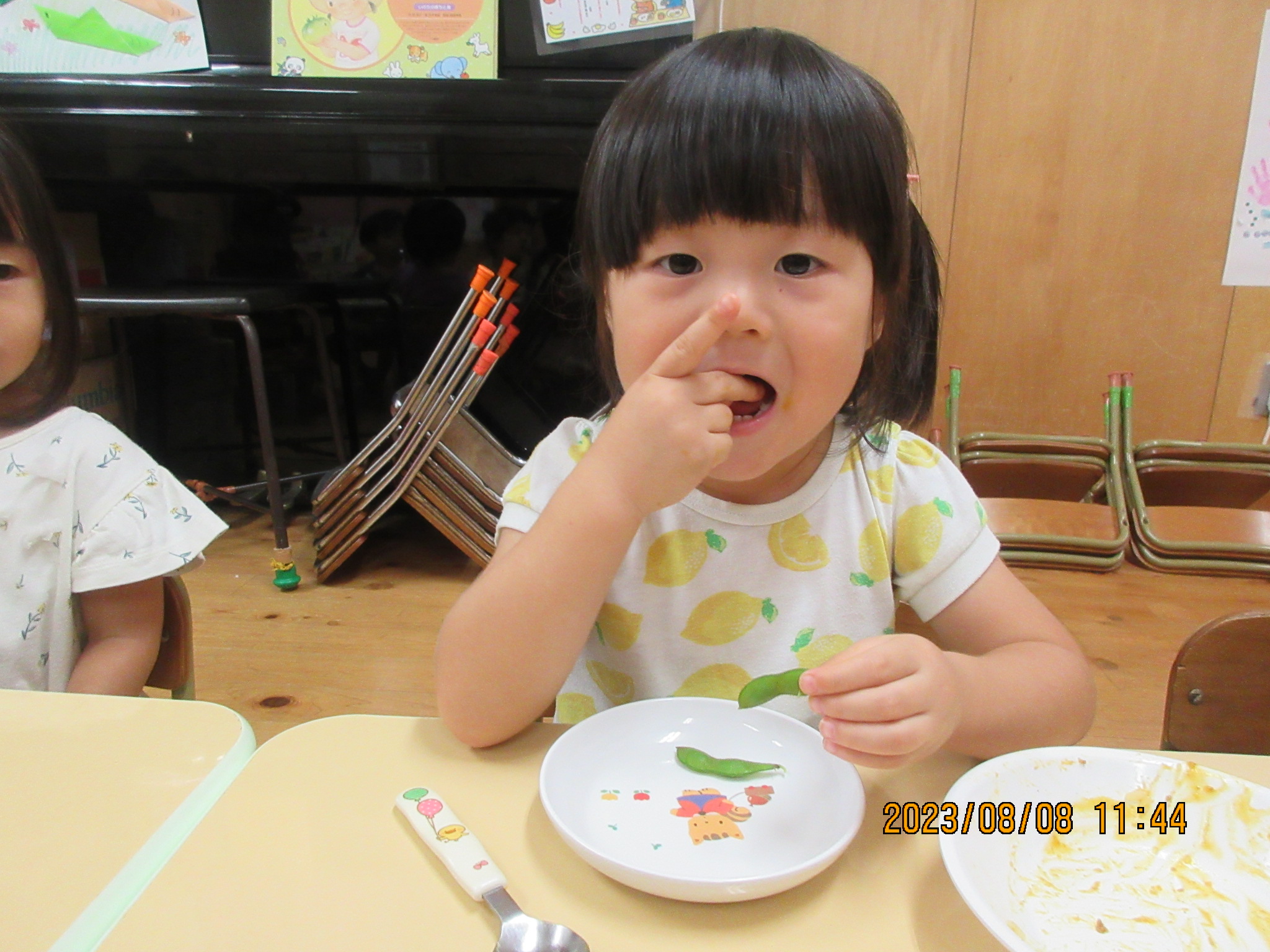 給食室で塩ゆでしてもらい、みんなで試食しました!!