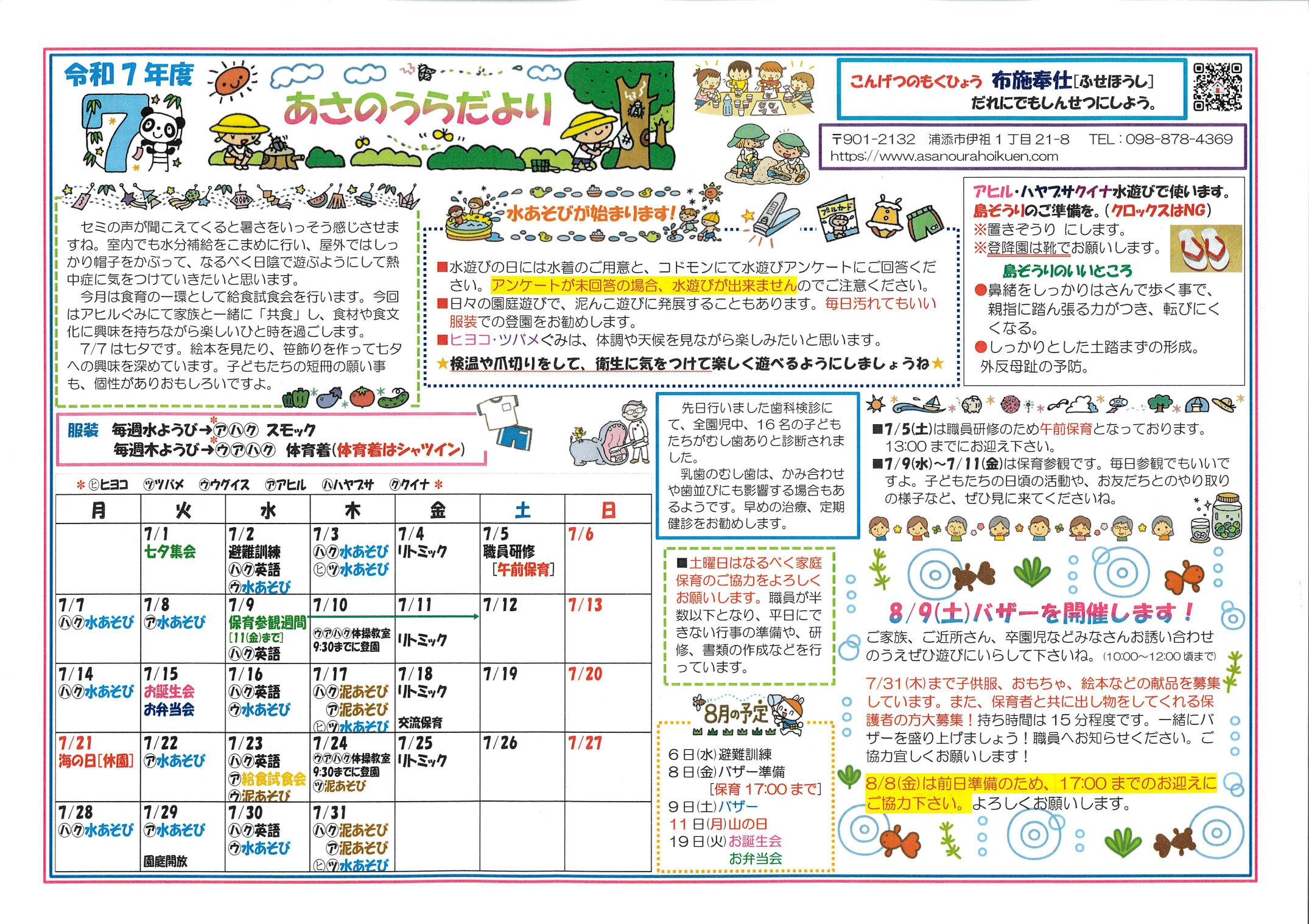 < R7年度 8月号 園だより